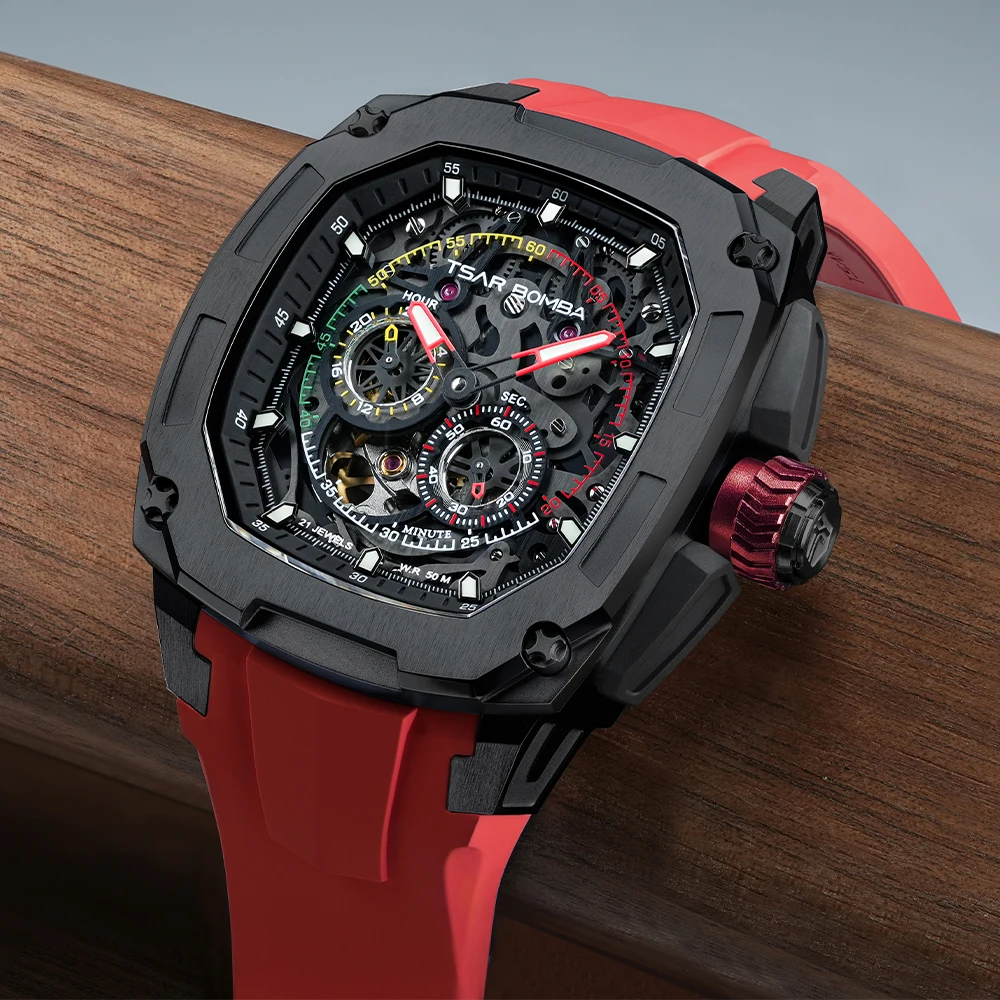 For TSAR BOMBA Luxury Mechanical Analog Watch for Men Water Resistant Rubber Band Factory Manufacturer Wholesale